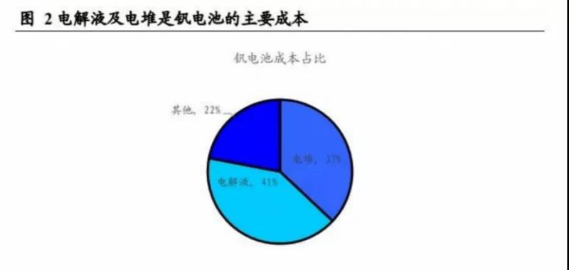 電堆成本的下降已逐步展開(kāi)。釩電池的成本主要來(lái)自于電堆和電解液,以10kW/40kWh釩電池儲(chǔ)能系統(tǒng)為例,假設(shè)釩電池儲(chǔ)能系統(tǒng)綜合成本為4500元/KWh,釩電解液成本占總成本的41%(1845元/kwh),電堆成本占比37%(1665元/kwh),其余為建安等成本。釩電解液主要成本為五氧化二釩,電解液成本主要受到釩價(jià)的影響,而電堆的成本主要來(lái)自于隔膜等材料。目前,電堆成本的下降已經(jīng)逐步展開(kāi):大連化物所通過(guò)開(kāi)發(fā)可焊接多孔離子傳導(dǎo)膜,使得電堆膜材料的使用面積下降30%、電堆的總成本下降40%,假設(shè)電解液的成本不變,目前釩電池成本下沿已下降至2844元/kwh??赡茴A(yù)見(jiàn),隨著技術(shù)的進(jìn)步,釩電池電堆成本仍將持續(xù)下降。