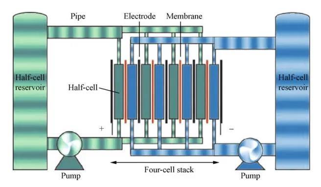 釩電池,全名:全釩氧化還原液流電池(Vanadium Redox Battery,縮寫(xiě)為VRB),是一種活性物質(zhì)呈循環(huán)流動(dòng)液態(tài)的氧化還原電池。釩電池是一種蓄電池,利用釩離子在不同氧化態(tài)下的不同化學(xué)勢(shì)能保存能量,具有充放電效率高、容量可以隨著貯液罐的增加而提高、電解液可以循環(huán)使用等優(yōu)點(diǎn)。