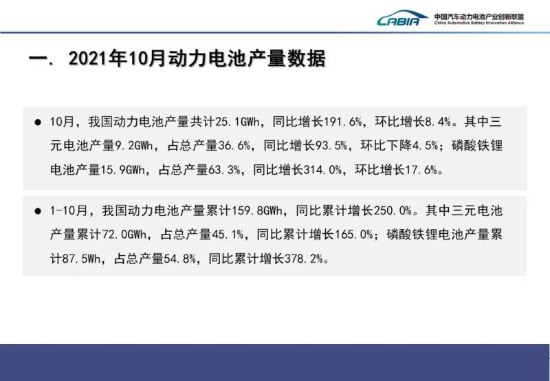 中國儲能網(wǎng)訊:2021年11月10日,中國汽車工業(yè)協(xié)會11月數(shù)據(jù)發(fā)布會在京召開,中國汽車動力電池產(chǎn)業(yè)創(chuàng)新聯(lián)盟發(fā)布2021年10月份動力電池月度數(shù)據(jù)。