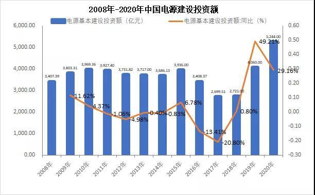 與之形成鮮明對比的是,我國電源投資“十三五”期間總體保持持續(xù)增長態(tài)勢,尤其是2020年電網(wǎng)投資達(dá)到創(chuàng)紀(jì)錄的5244億元。