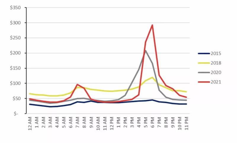 隨著越來越多的太陽能并入系統(tǒng),我們很可能會(huì)看到中午的價(jià)格甚至更低,而在晚上卻會(huì)出現(xiàn)飆升。與此同時(shí),同一時(shí)期的高需求也推動(dòng)了對(duì)昂貴網(wǎng)絡(luò)容量的需求。
