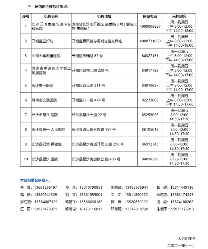 4、11月30-12月2日早上9:00--下午4:30,組委會在湖南國際會展中心(芒果館)南廣場防疫大棚設(shè)有核酸檢測點,53元/人,費用自理。