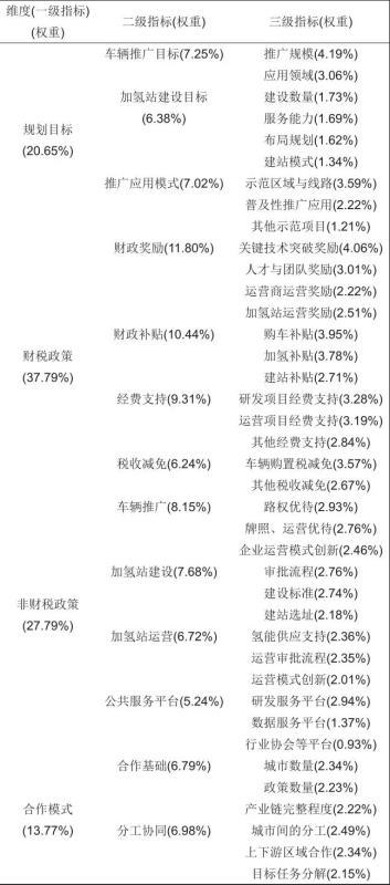 表4 城市燃料電池汽車政策評價指標(biāo)體系