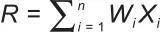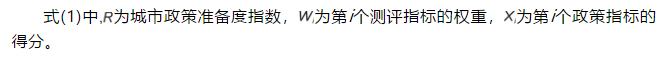對城市政策水平調(diào)查研究的一個重要目標(biāo)就是測量和評價到現(xiàn)階段的政策準(zhǔn)備度(R)。本文評價部分采用李克特(Likert)5點(diǎn)量表尺度對政策指標(biāo)打分,采用算術(shù)加權(quán)平均法來進(jìn)行計算,如式(1)所示。