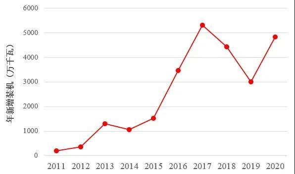 圖:國內(nèi)近10年光伏年新增裝機(jī)規(guī)模