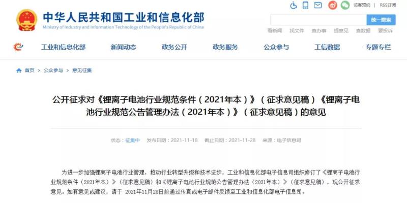 鋰離子電池行業(yè)規(guī)范條件(2021年本)(征求意見(jiàn)稿)