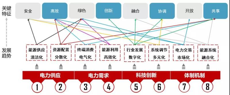 隨著能源高質(zhì)量發(fā)展,電力行業(yè)將在電力供應(yīng)、電力需求、科技創(chuàng)新、體制機(jī)制等四個方面呈現(xiàn)能源供應(yīng)清潔化、資源配置分散化、終端消費(fèi)電氣化、能源利用高效化、行業(yè)發(fā)展數(shù)字化、系統(tǒng)調(diào)節(jié)多元化、電力交易市場化、能源系統(tǒng)融合化等八大趨勢。