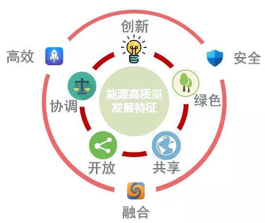 能源高質(zhì)量發(fā)展是經(jīng)濟(jì)社會高質(zhì)量發(fā)展的重要組成部分,首先應(yīng)深入貫徹新發(fā)展理念,體現(xiàn)“創(chuàng)新、協(xié)調(diào)、綠色、開放、共享”的發(fā)展特征,同時應(yīng)具備能源工業(yè)“安全、高效、融合”的行業(yè)發(fā)展特征。