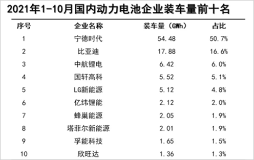 再來對比一下目前的裝機(jī)量水平和市占率,今年前十月,寧德時代的國內(nèi)裝機(jī)量占比超50%,是比亞迪的3倍以上,中航鋰電的8倍以上,是國軒高科的近10倍,是億緯鋰能的25倍。