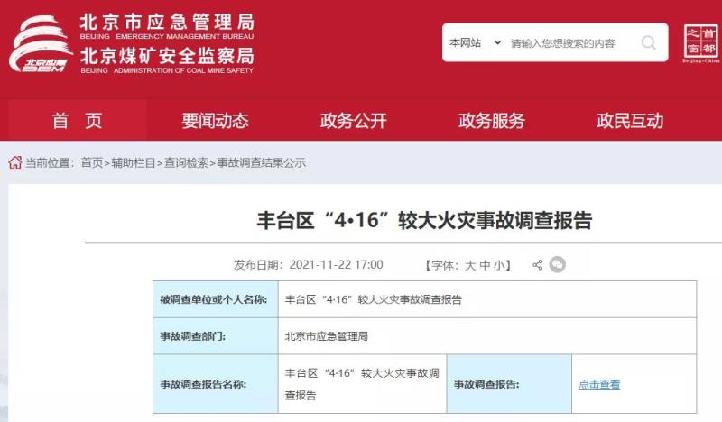 豐臺區(qū)“4·16”較大火災(zāi)事故調(diào)查報告