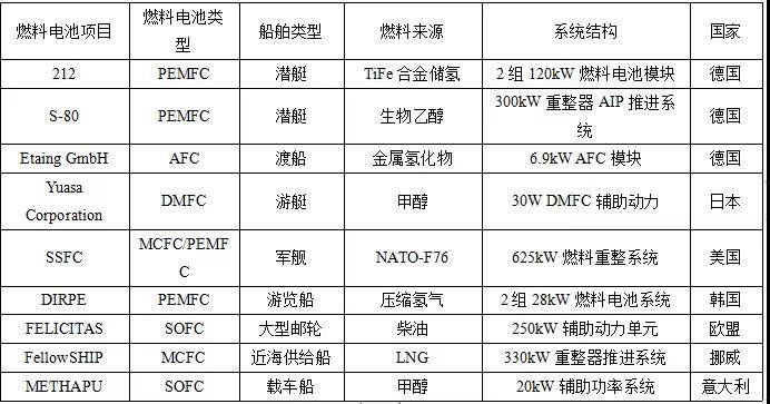 表2 不同國家燃料電池船舶開發(fā)項(xiàng)目