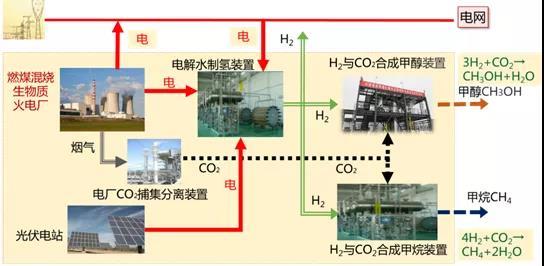 二是通過二氧化碳直接與氫氣合成,生產(chǎn)甲烷、甲醇等便于存儲(chǔ)、運(yùn)輸?shù)木G色燃料或作為重要化工原料產(chǎn)品,一方面可規(guī)避大規(guī)模二氧化碳捕集后壓縮及封存的高額成本投入,另一方面形成合理可行的產(chǎn)品收益模式,有利于火電企業(yè)推廣應(yīng)用二氧化碳捕集與利用技術(shù);在促進(jìn)火電行業(yè)碳減排及轉(zhuǎn)型發(fā)展的同時(shí),所生產(chǎn)的氫氣本身及與二氧化碳、氮?dú)夂铣缮傻木G色燃料化工原料產(chǎn)品,也可為能源相關(guān)領(lǐng)域化石燃料和原料替代提供一定的來源補(bǔ)充。