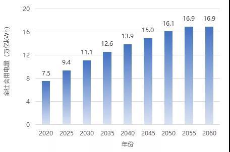 圖2 2020-2060年我國全社會(huì)用電總量變化趨勢