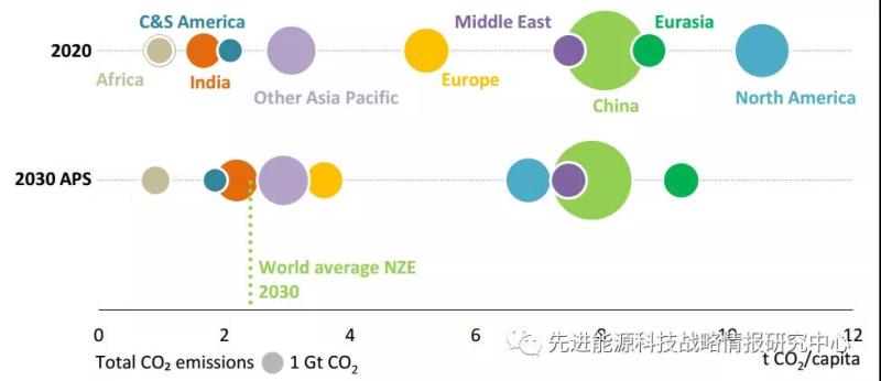 當(dāng)前全球還有數(shù)億人無法獲得最基本的現(xiàn)代能源。除中國之外的新興市場和發(fā)展中經(jīng)濟(jì)體占當(dāng)今全球人口的三分之二,到2050年將占世界人口增量(20億)的絕大部分,新興市場和發(fā)展中經(jīng)濟(jì)體對全球能源發(fā)展趨勢將起重要作用。關(guān)鍵清潔能源技術(shù)成本下降為新興市場和發(fā)展中經(jīng)濟(jì)體發(fā)展低碳能源提供了重要機(jī)會,但還未表現(xiàn)出終端用能部門跨越式采用低碳技術(shù)的趨勢。在既定政策情景下,到2030年新興市場和發(fā)展中經(jīng)濟(jì)體石油需求較2020年將增加1200萬桶/天(增長近30%),天然氣需求將增加5200億立方米(增長近25%),煤炭需求將增加1.6億噸(增長4%);而發(fā)達(dá)國家對化石燃料的需求將下降。中國目前在可再生能源基礎(chǔ)設(shè)施建設(shè)方面處于全球領(lǐng)先地位,越來越多的新興市場和發(fā)展中經(jīng)濟(jì)體也相繼進(jìn)行了部署示范。既定政策情景中,到2030年可再生能源占新興市場和發(fā)展中經(jīng)濟(jì)體(不包括中國)新增電力裝機(jī)容量的三分之二,而目前這一比例約為50%。在既定政策情景下,新興市場和發(fā)展中經(jīng)濟(jì)體的電力需求將快速增長,這主要是由于工業(yè)部門電機(jī)和電器擁有量的增加。綜上所述,新興市場和發(fā)展中經(jīng)濟(jì)體將對未來幾十年內(nèi)CO2排放量的增長至關(guān)重要。在既定政策情景下,到2050年新興市場和發(fā)展中經(jīng)濟(jì)體(不包括中國)的碳排放量將增加55億噸,其中工業(yè)和交通部門碳排放量增幅最大;相比之下,發(fā)達(dá)經(jīng)濟(jì)體碳排放量將減少37億噸,中國將減少30億噸。在承諾目標(biāo)情景下,碳排放量差別更為顯著。盡管新興市場和發(fā)展中經(jīng)濟(jì)體中只有小部分國家承諾凈零排放,但應(yīng)注意到該地區(qū)(不包括中國)的人均碳排放遠(yuǎn)低于發(fā)達(dá)國家,承諾目標(biāo)情景中到2030年其人均排放量不到發(fā)達(dá)經(jīng)濟(jì)體平均水平的一半。