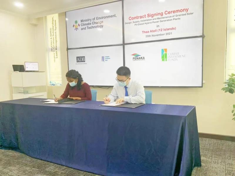中國儲能網(wǎng)訊:2021年11月29日,中騰微網(wǎng)在馬爾代夫的又一新能源微電網(wǎng)項目“馬爾代夫12個島光柴儲微電網(wǎng)總承包項目”在馬累舉行了簽約儀式,馬爾代夫環(huán)境部部長, FENAKA電力局領導和中騰微網(wǎng)馬爾代夫項目部負責人共同出席了簽約儀式。
