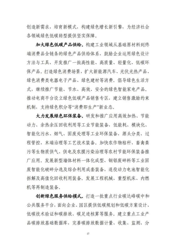 加大綠色低碳產(chǎn)品供給。打造綠色消費(fèi)場(chǎng)景,擴(kuò)大新能源汽車、光伏光熱產(chǎn)品、綠色消費(fèi)類電器電子產(chǎn)品、綠色建材等消費(fèi)。倡導(dǎo)綠色生活方式,繼續(xù)推廣節(jié)能、節(jié)水、高效、安全的綠色智能家電產(chǎn)品。推動(dòng)電商平臺(tái)設(shè)立綠色低碳產(chǎn)品銷售專區(qū),建立銷售激勵(lì)約束機(jī)制,支持綠色積分等“消費(fèi)即生產(chǎn)”新業(yè)態(tài)。
