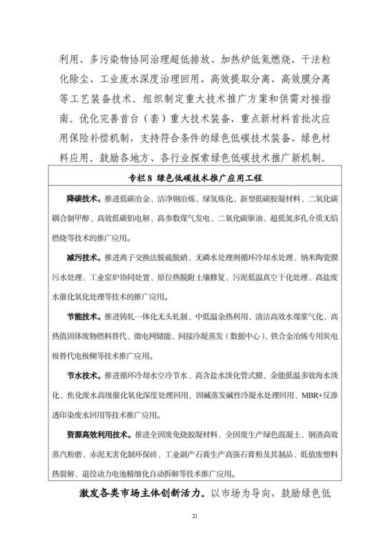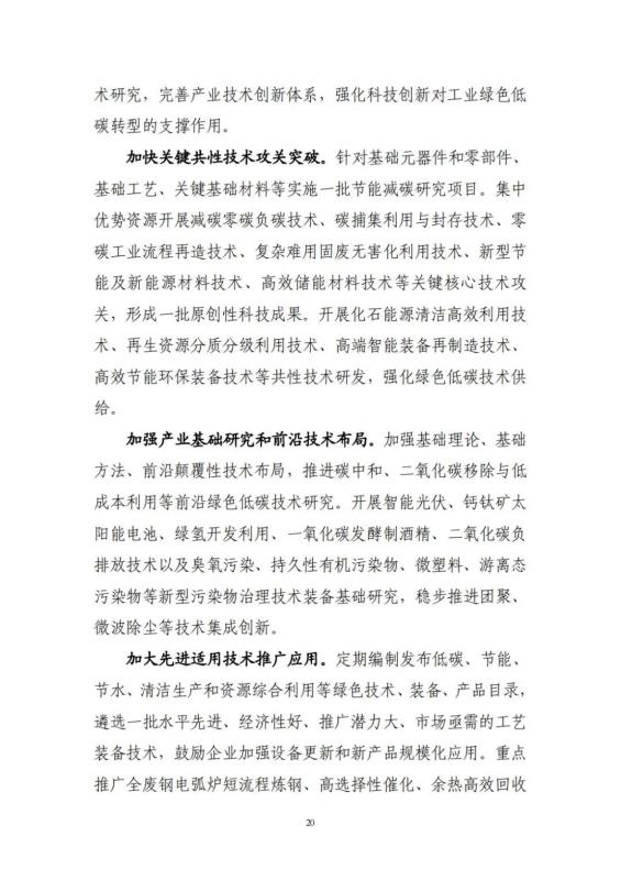 規(guī)劃提出,到2025年,單位工業(yè)增加值二氧化碳排放降低18%。加強(qiáng)產(chǎn)業(yè)基礎(chǔ)研究和前沿技術(shù)布局。開展智能光伏、鈣鈦礦太陽(yáng)能電池、綠氫開發(fā)利用、一氧化碳發(fā)酵制酒精、二氧化碳負(fù)排放技術(shù)以及臭氧污染、持久性有機(jī)污染物、微塑料、游離態(tài)污染物等新型污染物治理技術(shù)裝備基礎(chǔ)研究,穩(wěn)步推進(jìn)團(tuán)聚、微波除塵等技術(shù)集成創(chuàng)新。