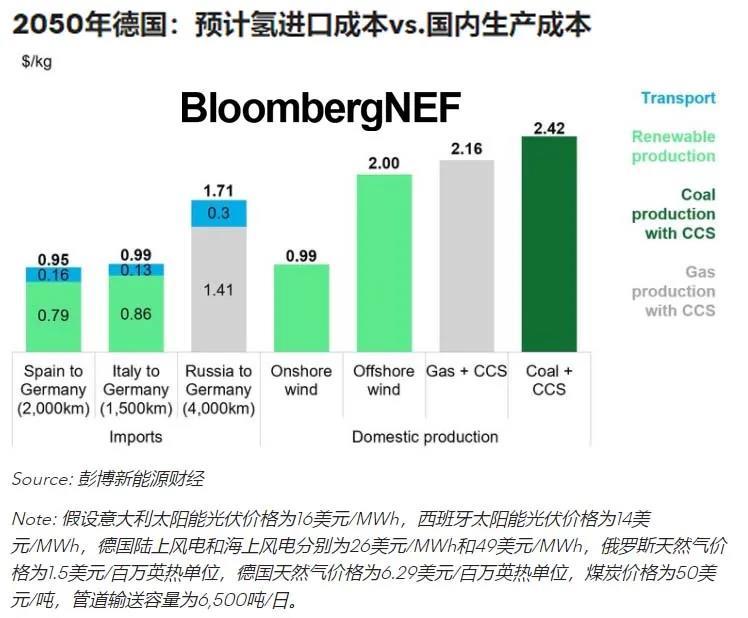 德國(guó)對(duì)氫氣管道的關(guān)注符合該國(guó)的氫戰(zhàn)略。為了實(shí)現(xiàn)氣候目標(biāo),該國(guó)2030年的低碳?xì)湫枨蟊仨氝_(dá)到90至110TWh,即230至280萬噸。由于對(duì)本土可再生能源生產(chǎn)的擔(dān)憂較盛,德國(guó)氫戰(zhàn)略的實(shí)現(xiàn)將較大程度依賴氫氣進(jìn)口。在此背景下,通過管道將進(jìn)口氫氣輸送至各個(gè)需求點(diǎn),對(duì)德國(guó)氫戰(zhàn)略的成功實(shí)施至關(guān)重要。根據(jù)彭博新能源財(cái)經(jīng)的分析,管道也是長(zhǎng)距離、大規(guī)模氫氣運(yùn)輸?shù)淖盍畠r(jià)方式。比方說,到2050年,從意大利和西班牙進(jìn)口的氫氣將與德國(guó)國(guó)內(nèi)生產(chǎn)的綠色氫氣價(jià)格持平,甚至更低。