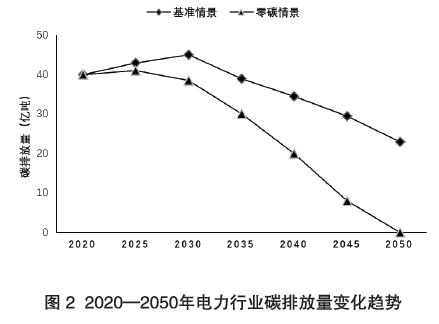 電力行業(yè)的低碳化轉型,最直觀的指標就是碳排放量的減少趨勢。通過圖2,可以直觀地看到,在不同的情景模擬下,電力行業(yè)的碳排放趨勢差異顯著。