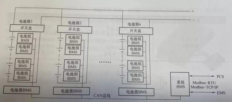 一個完整的儲能系統(tǒng)BMS由電池組BMS,電池簇BMS及系統(tǒng)BMS組成,這對于由大量電芯串并聯(lián)組成的大規(guī)模儲能系統(tǒng)而言,三級BMS的設(shè)計從最大程度上避免了電芯不均衡及其所導致的過充及過放。