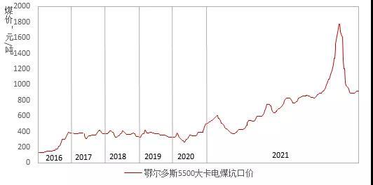 圖3 鄂爾多斯坑口煤價格變化(截至2021.11.30)