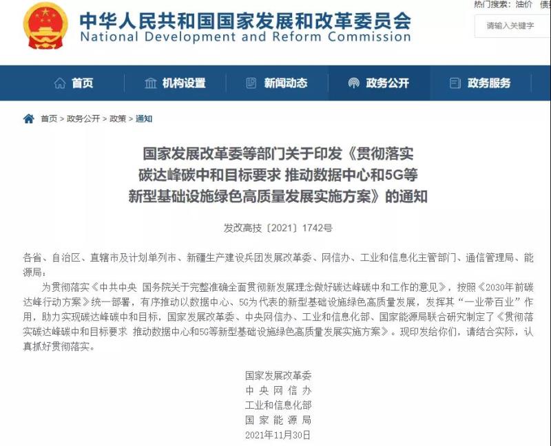 中國(guó)儲(chǔ)能網(wǎng)訊:近日,國(guó)家發(fā)展改革委、中央網(wǎng)信辦、工業(yè)和信息化部、國(guó)家能源局聯(lián)合發(fā)布《貫徹落實(shí)碳達(dá)峰碳中和目標(biāo)要求 推動(dòng)數(shù)據(jù)中心和5G等新型基礎(chǔ)設(shè)施綠色高質(zhì)量發(fā)展實(shí)施方案》的通知。通知要求: