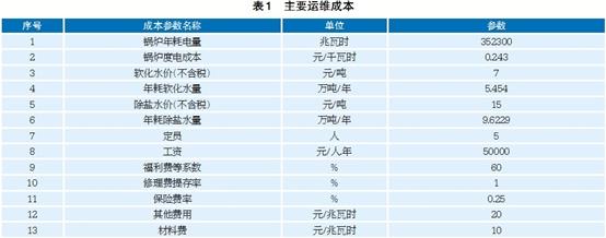 調(diào)峰電量及調(diào)峰補(bǔ)貼電價。項目運(yùn)行時間按照某市采暖期233天,每天調(diào)峰7小時考慮。第一檔調(diào)峰電量3400兆瓦時,第二檔調(diào)峰電量34890兆瓦時(達(dá)到東北電網(wǎng)調(diào)峰深度要求的調(diào)峰電量);第一檔調(diào)峰電價補(bǔ)貼0.3元/千瓦時,第二檔調(diào)峰電價補(bǔ)貼0.8元/千瓦時,加權(quán)平均調(diào)峰電價補(bǔ)貼0.795元/千瓦時。主要運(yùn)維成本見表1。