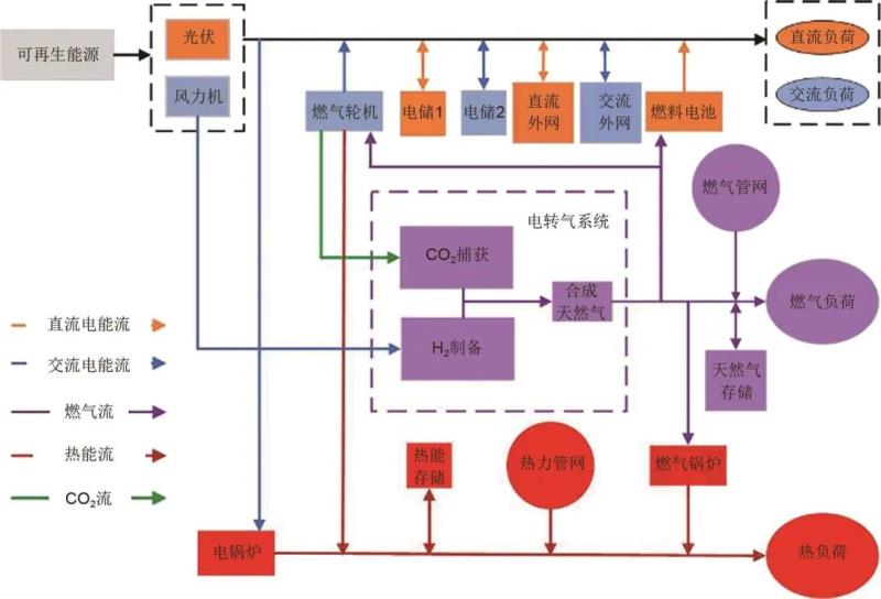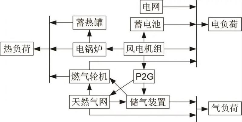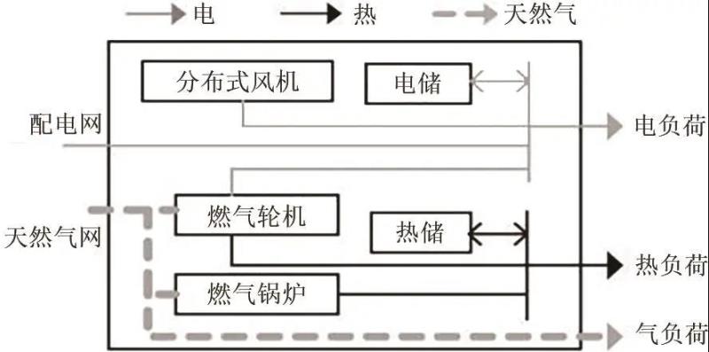 圖7 一種利用電-天然氣-熱混合儲能的供能系統(tǒng)示意圖