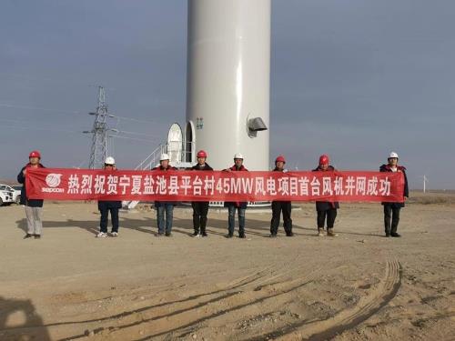中國(guó)儲(chǔ)能網(wǎng)訊:12月8日12點(diǎn)08分,中國(guó)電建所屬山東電建三公司寧夏鹽池縣平臺(tái)村45MW分散式風(fēng)電項(xiàng)目首臺(tái)風(fēng)機(jī)并網(wǎng)前試驗(yàn)順利完成,各項(xiàng)指標(biāo)均滿足并網(wǎng)要求,并網(wǎng)發(fā)電一次成功。