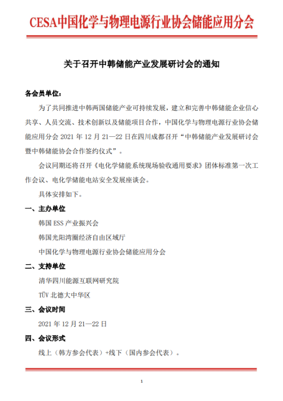 關(guān)于召開(kāi)中韓儲(chǔ)能產(chǎn)業(yè)發(fā)展研討會(huì)的通知