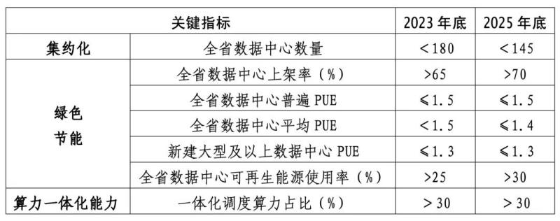 到2025年底,形成布局合理、技術(shù)先進(jìn)、綠色低碳、算力規(guī)模與經(jīng)濟(jì)增長(zhǎng)相適應(yīng)的數(shù)據(jù)中心發(fā)展格局。在集約化、綠色化、一體化方面明確2023年和2025年的發(fā)展目標(biāo)。