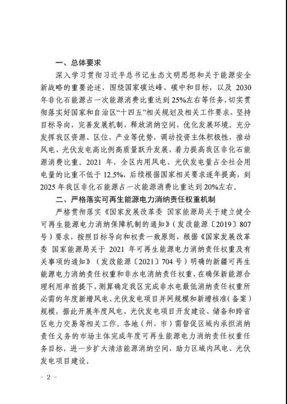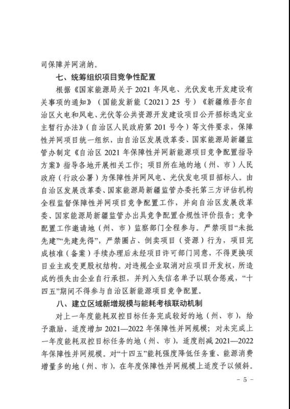 征求意見稿顯示,根據(jù)國家下達新疆2021年度非水電最低消納責任權重12.5%,2022年非水電消納責任權重最低預期值13.75%的目標進行測算,2021年-2022年,新疆新增風電、光伏發(fā)電項目保障性規(guī)模約5.26吉瓦。