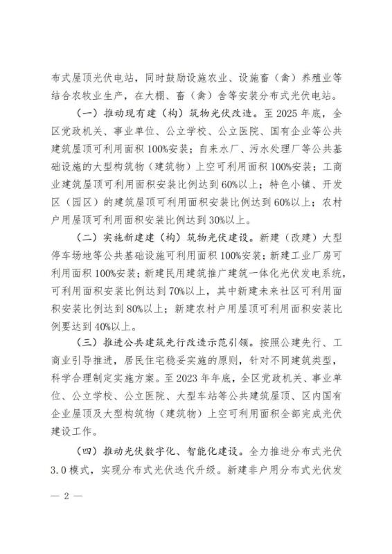 重點工作利用在現(xiàn)有建(構(gòu))筑物、新建建(構(gòu))筑物等屋頂建設(shè)分布式屋頂光伏電站,同時鼓勵設(shè)施農(nóng)業(yè)、設(shè)施畜(禽)養(yǎng)殖業(yè)等,結(jié)合農(nóng)牧業(yè)生產(chǎn),在大棚、畜(禽)舍等安裝分布式光伏電站。