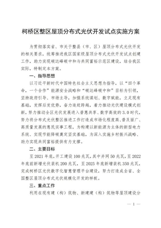 一、柯橋區(qū)整區(qū)屋頂分布式光伏開發(fā)試點實施方案