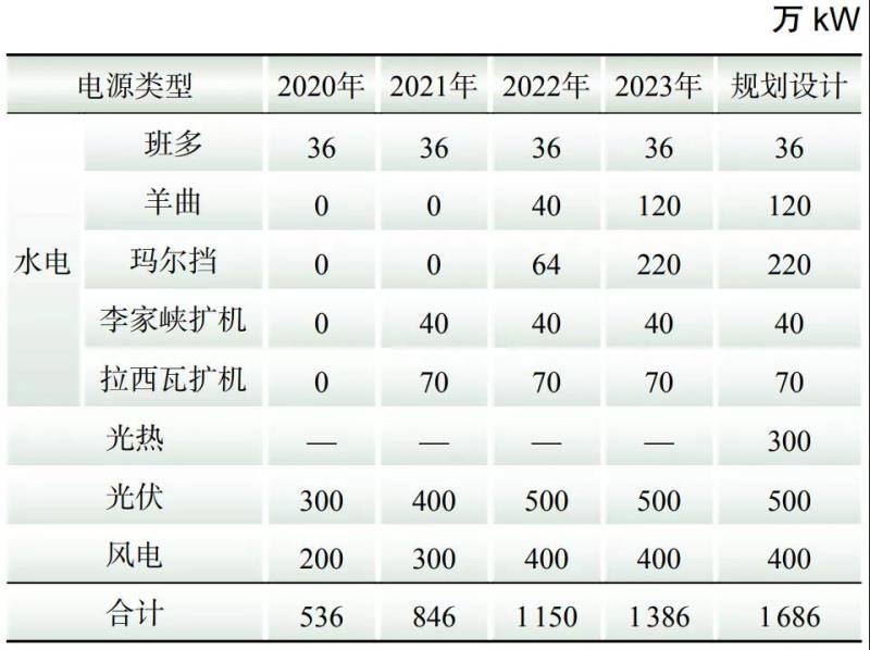 由于多種原因,配套電源建設和投產存在滯后情況,如表1所示,拉西瓦擴機預計于2021年9月投產,李家峽擴機預計于2021年12月投產,羊曲水電站和瑪爾擋水電站機組預計于2022—2023年陸續(xù)投產。光熱項目投產時間尚不確定[12]。