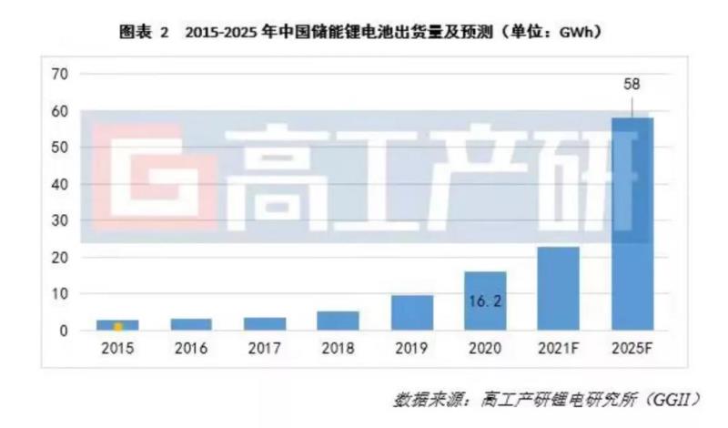 GGII預(yù)計(jì),2025年全球儲(chǔ)能電池出貨量將達(dá)416GWh,未來5年年復(fù)合增長率約為72.8%;中國儲(chǔ)能鋰電池出貨量將達(dá)58GWh,市場規(guī)模超過550億元。其中,作為主要應(yīng)用領(lǐng)域的電力儲(chǔ)能鋰電池“十四五”累計(jì)出貨量將超60GWh。