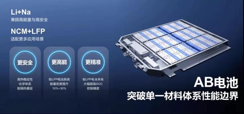 在結(jié)構(gòu)創(chuàng)新方面,我們團(tuán)隊(duì)基于BMS的全新算法,提出并實(shí)現(xiàn)了在單個(gè)電池包中布置AB兩種不同電芯的設(shè)計(jì)方案,AB既可以是鐵鋰+三元,也可以是鋰電池+鈉電池,還可以是其他更多種不同組合的混搭。這種設(shè)計(jì)突破了單一材料體系性能邊界,實(shí)現(xiàn)優(yōu)勢互補(bǔ),為客戶提供更全面的解決方案。