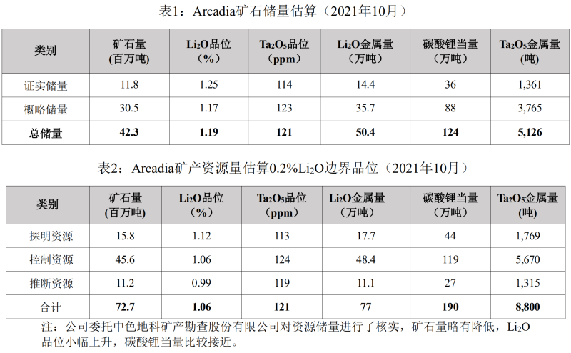 Arcadia項(xiàng)目?jī)?chǔ)量、資源量 圖片來源:華友鈷業(yè)公告截圖