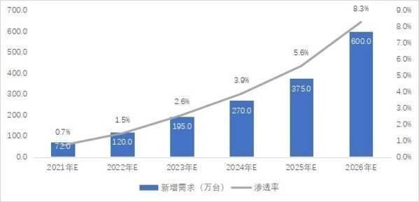 除去戶外活動領(lǐng)域和應(yīng)急用電場景之外,還可應(yīng)用于車載充電、DIY以及電力缺乏地區(qū)的用電等眾多領(lǐng)域隨著產(chǎn)品性價比提升,其他領(lǐng)域的滲透率也將有所提升預(yù)計到2026年,其他領(lǐng)域?qū)Ρ銛y式儲能的新增需求或?qū)⑦_(dá)到600萬臺,市場滲透率將提升至8.3%。