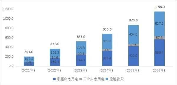 以災(zāi)害高發(fā)的日本為例,2018年9月發(fā)生的北海道東部地震致使整個北海道停電,停電導(dǎo)致的直接經(jīng)濟(jì)損失超1,500億日元2018年9月臺風(fēng)“潭美”導(dǎo)致沖繩縣內(nèi)超過70,000戶家庭停電便攜儲能產(chǎn)品能解決災(zāi)害缺電、停電、應(yīng)急救援等電力短缺問題,并能與太陽能板組合形成小型太陽能發(fā)電系統(tǒng),在災(zāi)后電網(wǎng)癱瘓及毀壞情況下,為災(zāi)后生活實(shí)現(xiàn)持續(xù)離網(wǎng)發(fā)電,保障災(zāi)民的基本生活需求,2019年日本防災(zāi)協(xié)會便已將便攜儲能產(chǎn)品列為防災(zāi)安全物資認(rèn)證產(chǎn)品未來,隨著應(yīng)急備用電源的逐步普及以及便攜儲能產(chǎn)品對小型燃油發(fā)電機(jī)的逐步替代,便攜儲能產(chǎn)品在應(yīng)急備災(zāi)市場的需求空間將更加廣闊預(yù)計到2026年,全球應(yīng)急領(lǐng)域新增需求將達(dá)到1155萬臺。