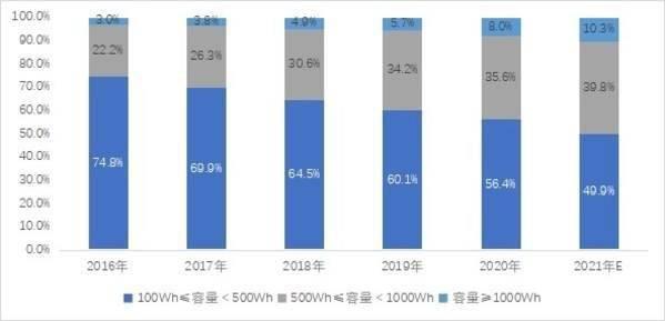 2016-2021年不同容量產(chǎn)品份額變化趨勢