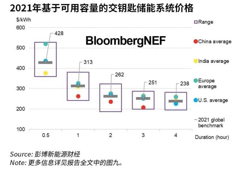 2021年基于可用容量的四小時(shí)交鑰匙儲(chǔ)能系統(tǒng)的基準(zhǔn)價(jià)格