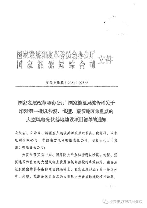 10月中下旬,內(nèi)蒙古、甘肅、青海、寧夏4省區(qū)集中組織開(kāi)工了一批以沙漠、戈壁、荒漠地區(qū)為主的大型風(fēng)電光伏基地項(xiàng)目,總規(guī)模近3000萬(wàn)千瓦,拉開(kāi)第一批裝機(jī)容量約1億千瓦項(xiàng)目開(kāi)工序幕,以實(shí)際行動(dòng)向世界展現(xiàn)我國(guó)堅(jiān)定不移走綠色發(fā)展道路和實(shí)現(xiàn)碳達(dá)峰、碳中和的雄心、決心。