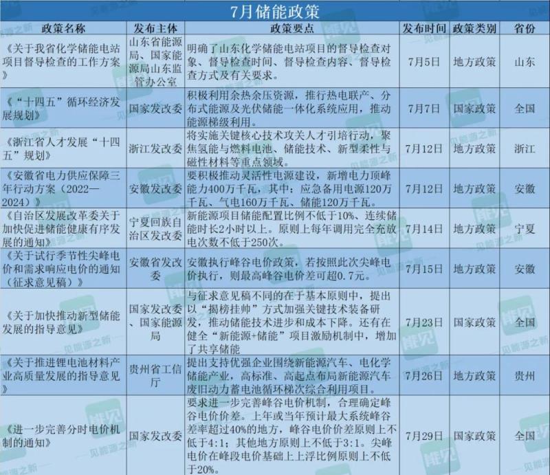第一彈重磅利好是從國家層面首次提出裝機(jī)規(guī)模目標(biāo)。7月23日,國家發(fā)展改革委、國家能源局正式聯(lián)合發(fā)布《國家發(fā)展改革委 國家能源局關(guān)于加快推動新型儲能發(fā)展的指導(dǎo)意見》,明確到2025年,我國新型儲能裝機(jī)規(guī)模達(dá)3000萬千瓦以上。