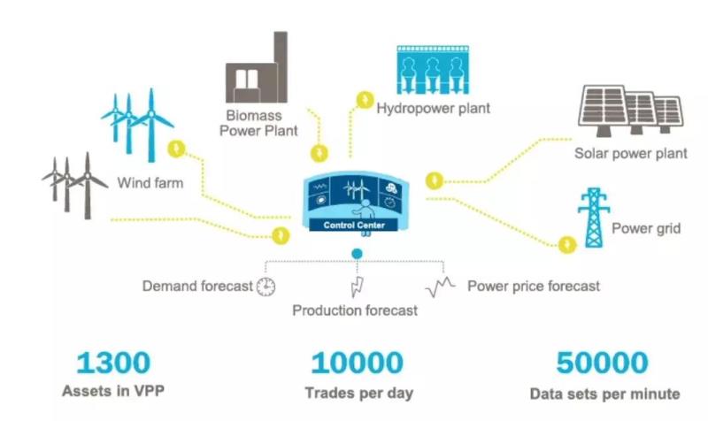 虛擬電廠可以遠(yuǎn)程控制電網(wǎng)中的每個獨(dú)立電力生產(chǎn)商,每天超過10,000次交易。例如,如果市場價格突然下降或電網(wǎng)限制,我們可以降低發(fā)電廠的產(chǎn)出。這使工廠能夠?qū)崟r平衡電力生產(chǎn)。目前,這項創(chuàng)新已經(jīng)開始推廣,已經(jīng)有超過50種VPP解決方案。