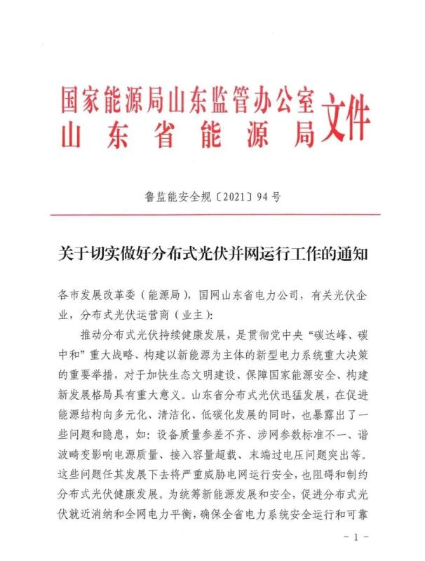 中國(guó)儲(chǔ)能網(wǎng)訊:12月28日,山東能監(jiān)辦、山東省能源局發(fā)布《關(guān)于切實(shí)做好分布式光伏并網(wǎng)運(yùn)行工作的通知》,提出: