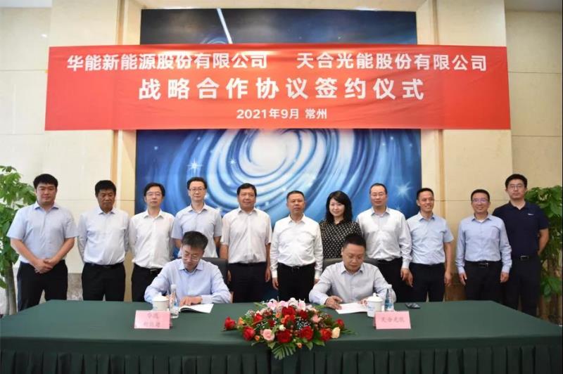 2021年9月16日,王力軍董事長率華能新能源總部及區(qū)域公司相關(guān)領(lǐng)導(dǎo)一行到訪常州,考察天合光能總部及戶用分布式樣板項目,并與天合光能高紀(jì)凡董事長暢談雙方未來合作。期間,在雙方董事長見證下,天合智慧分布式能源有限公司與華能新能源股份有限公司簽署戰(zhàn)略合作協(xié)議。雙方約定在分布式光伏領(lǐng)域深化業(yè)務(wù)合作,打造可持續(xù)發(fā)展戰(zhàn)略伙伴關(guān)系。
