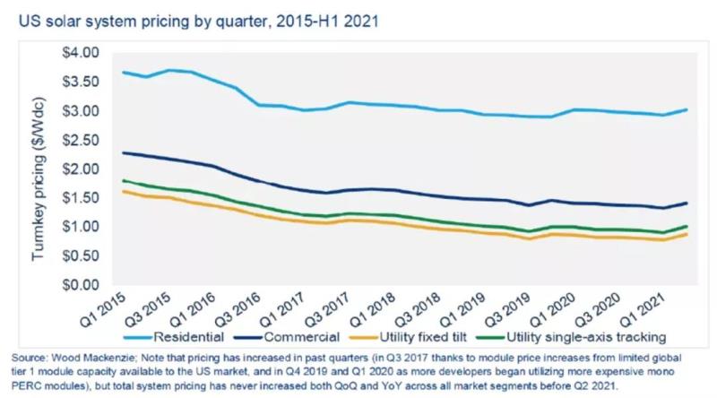 盡管全球經(jīng)濟形勢風(fēng)云變幻,美國國內(nèi)能源政策也不斷變化,但美國太陽能市場已成功實現(xiàn)了十年的穩(wěn)定增長。即使在2021年這“另類”的一年里,太陽能擴張仍在繼續(xù)。根據(jù)前三個季度的結(jié)果,分析師們估計美國2021年將部署19吉瓦的公用事業(yè)規(guī)模太陽能和近4吉瓦的分布式太陽能,這兩類太陽能的裝機都創(chuàng)下了美國歷史記錄。盡管安裝成本高、工人短缺、供應(yīng)鏈問題和進口關(guān)稅復(fù)雜,但太陽能行業(yè)仍在蓬勃發(fā)展。
