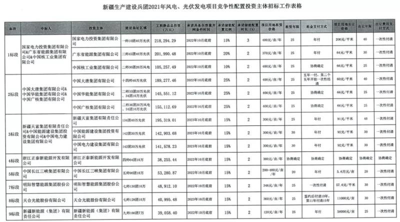 近日,新疆兵團(tuán)發(fā)改委正式公布了此次競(jìng)爭(zhēng)性配置結(jié)果。其中,6標(biāo)段流標(biāo)。因此,最終337萬(wàn)千瓦項(xiàng)目由14家企業(yè)獲得。其中,