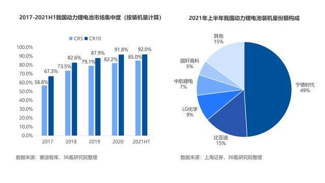 2020年以來(lái),以寧德時(shí)代、比亞迪、中航鋰電、國(guó)軒高科等為代表的領(lǐng)軍企業(yè)加快高鎳低鈷電池、硅負(fù)極材料電池、“永不起火”電池等新技術(shù)研制,競(jìng)爭(zhēng)優(yōu)勢(shì)明顯。2020年,我國(guó)動(dòng)力電池CR5和CR10分別達(dá)到82.2%和91.8%,相較2019年分別提升3.1%、3.9%。未來(lái),隨著頭部企業(yè)技術(shù)創(chuàng)新、產(chǎn)品擴(kuò)產(chǎn),我國(guó)動(dòng)力電池市場(chǎng)集中度有望進(jìn)一步提升。